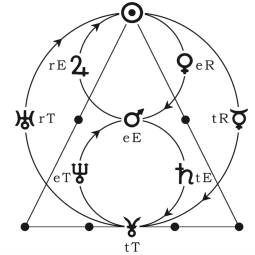 Le modèle ou médaillon RET organise les fonctions planétaires selon l’ordonnancement du système solaire tel qu’il s’incarne en l’Homme.