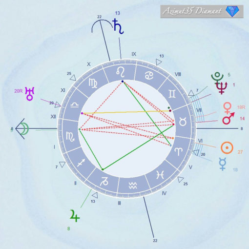 Cette analyse vise à montrer la méthode d’une interprétation conditionaliste. L’essentiel est de suivre une trame méthodique, exploitant le langage de base : groupes planétaires, planètes dominantes et non-dominantes, planète aveugle, formule zodiacale, puis établir des liens, formuler des hypothèses, les argumenter et les illustrer. Le thème astral est une grille de lecture qui révèle des aspects clés du fonctionnement d’un individu et de son rapport au monde. L’objectif était de rester synthétique sans être réducteur.